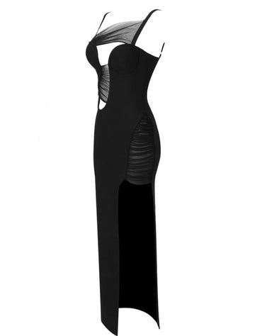 This dress features a square neckline and sleeveless design, highlighting the shoulders and collarbone. The...