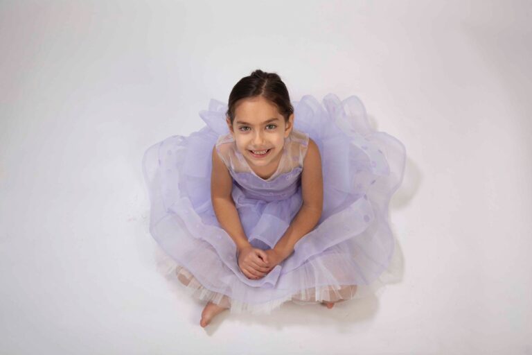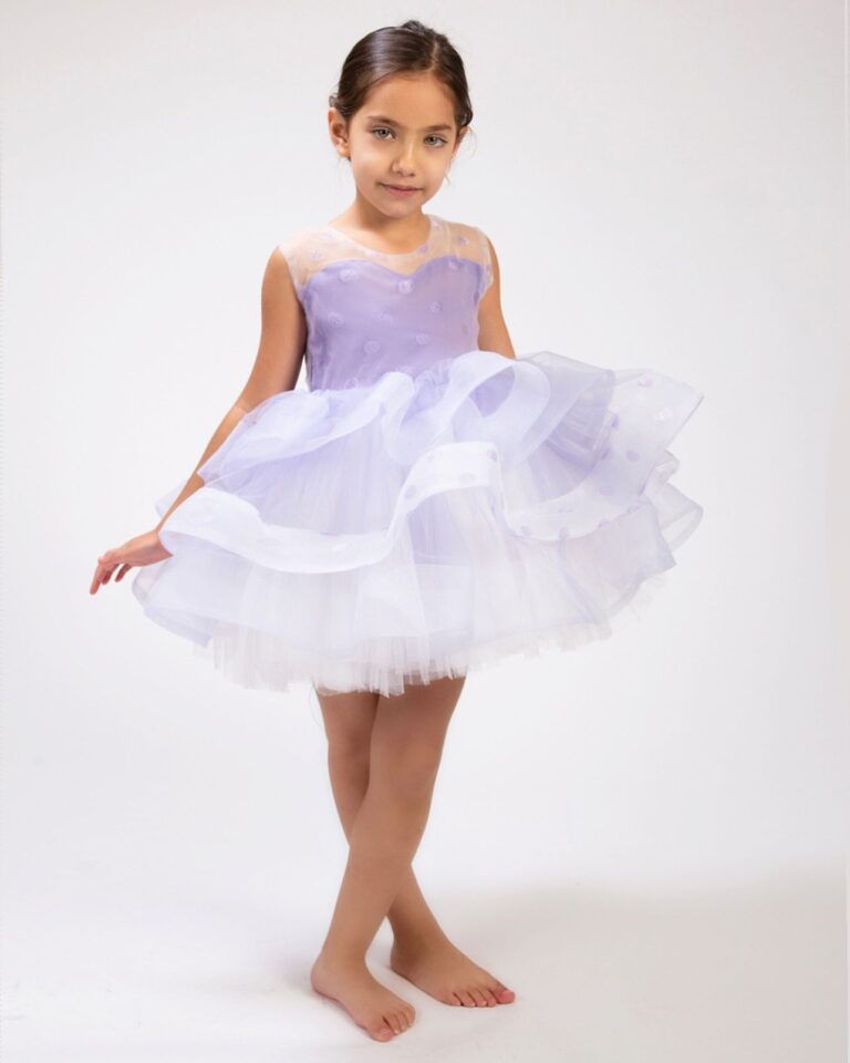 - This beautiful and dreamy number is made from layers of white and lilac tulle.